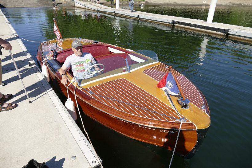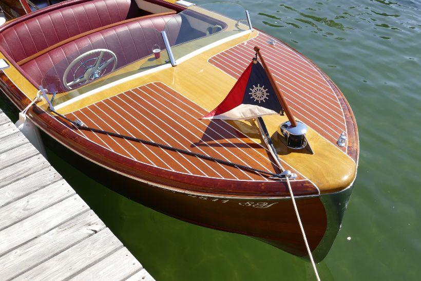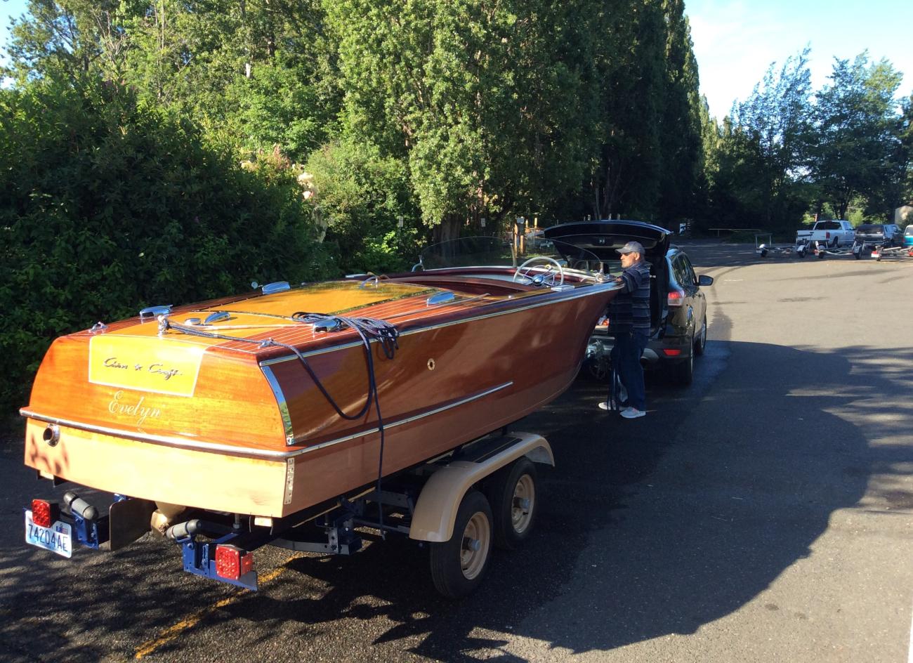 Professionally restored by Master Shipwright. African mahogany sides, topsides; Bobinga mahogany covering boards; white oak backbone, including keel, chine logs, transom ring timber, stem. Silicon bronze fastenings. 5200 bottom, 6 ounce fiberglass epoxied cloth. New windscreen. Rebuilt Hercules 95 horsepower, straight 6; rebuilt generator, carburetor, starter, voltage regulator, new 12 volt system. Instruments Clawson rebuild. Seats rebuilt with original style box springs, horse hair matting, canvas, covered with maroon vinyl tolex red. Custom built tandem axle trailer,, custom roller cart for winter storage. Many more extras. $33,500 cash.