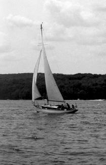 Reuel Kaighn named this 34' full keel sloop after his father-in-law, John Lord, a naval architect and marine engineer. JL is a James B. DeWitt one-design, built by him in 1950 in Oakland, CA. She spent nearly ten years in storage, before being restored at Shotwell Boatyard, in Nescopeck, PA. Restoration took 3 years and included sistering 48 broken frames with laminated oak frames. She sails with the Paupack Sailing Club on lake Wallenpaupack, PA.