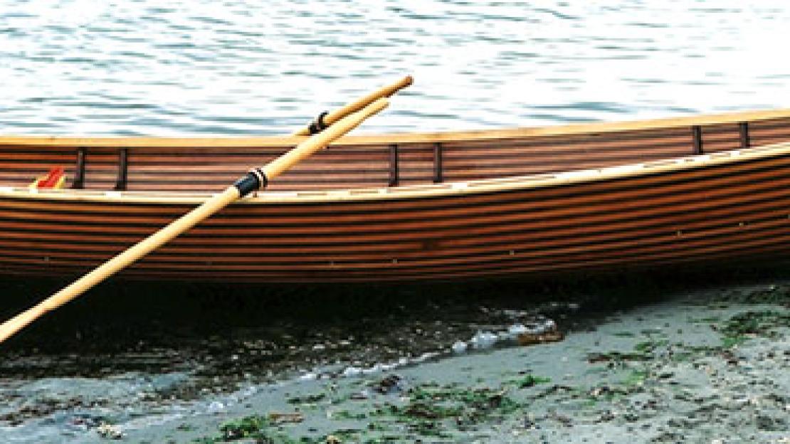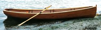 Jun'ichi launched KIRI, a 15'6" pulling boat designed by William Atkin in May 2002. He uses KIRI (Japanese for 'mist') in the waters near Victoria, BC. KIRI is equipped with three rowing stations and a 4-hp Evinrude for propulsion. He writes that she motors well at just over 5 knots and pulls beautifully. He has a sailing rig in the works.