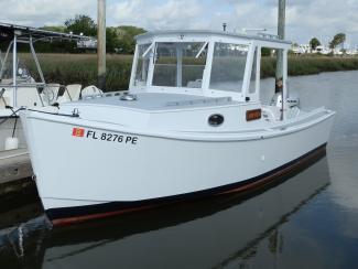 Arch Davis Jiffy V22 Skiff 2011. 8'-6 beam, meranti plywood, douglas fir framing, MAS expoxy. 90-hp, two axle trailer. Stored Olde Towne Marina, Fernandina, Florida. Asking $25,000.