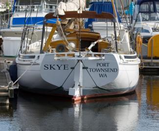 Backbone timbers are white oak from the Eppick farm in Newberg, OR. Keel is Douglas fir; planking, Port Orford cedar. Deck is 1″ marine plywood covered with a felted polyester fabric and epoxy. Frames are white oak, the separate bulwark stanchions are black locust. Interior trim is mahogany and black walnut. Other than the lead keel ballast, all other metals are silicon bronze. She has 70 gallons of fresh water stowage in three tanks. There is no inboard engine. The mast is a hollow box spar of Douglas fir.LOD is 31′ 8″.