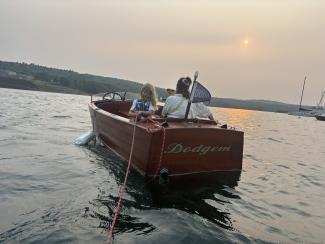 This stunning 16' mahogany inboard runabout is model 202, the “Special Utility Boat.” Built in 1934, it is fitted with a 4-cylinder, 35-hp Lycoming engine. Complete with a shatterproof windshield, automotive steering, nickel silver fittings, and upholstered seat backs and cushions. The wooden hull and framing are almost totally original, and the hull was refastened about 15 years ago. The Lycoming engine (#3090) has been maintained and winterized annually. The exhaust piping was replaced in 2021. Current owner purchased from Maine Maritime Museum and was launched successfully in 2025. Boat took on some water in storm swell this season, and needs engine clean out and likely a new starter.