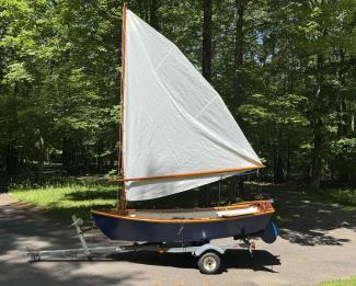 12' wooden sailing/rowing skiff. Owner built in 1985 from King and Davis design. Kept under cover when not in use. Constructed of marine plywood, with mahogany transom and thwarts, Douglas fir frames, oak and ash trim, and Sitka spruce spars. Custom sewn sail. Epoxy encapsulated. Includes trailer with new tires.