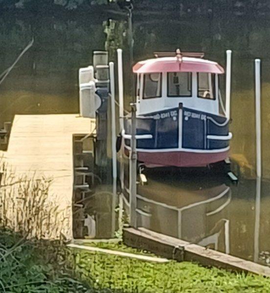 After 13 years of part-time building, Bob Cosler, of Pasadena, Maryland launched ALEX-ELECTRA in July 2021. Built from Berkeley Engineering plans for the Candu EZ tug she is powered by a 10 hp golf cart motor running from six, 6 -volt Trojan batteries. She makes about 5-6 knots which is just the right speed as everyone wants to circle the tug and ask questions when she is on the water. Having recently relocated to Florida; Alex-Electra will be plying the waters of Lemon Bay, off the west coast near Englewood, Fl.