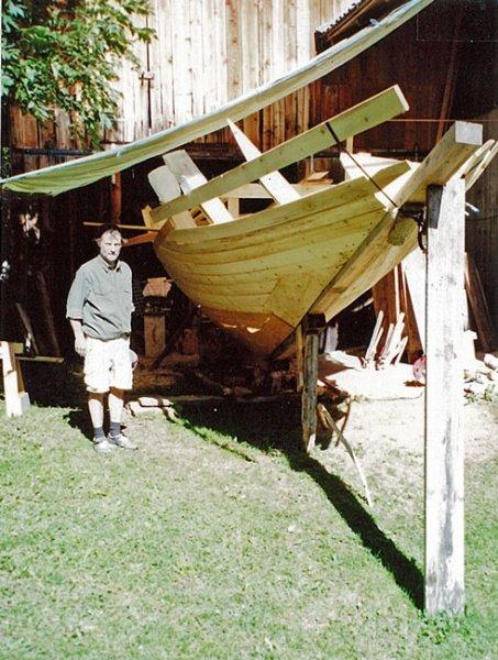 Ulrich Regelsberger writes, "As a passionate sailor since my children days on the Mediterranean coast of northern Tunisia, I decided to build my own boat." Encouraged by Ted Okie's article, "The Sloops of Haiti's North Coast" (WB #189, page 50), in which "those [Haitian] boatbuilders work with little resources in any sense of the word," Ulrich began to choose timber from local sources. When we last heard from him, he had completed planking the hull and was on to the deck and house. He plans to use the boat on the small lakes in the Tyrol.