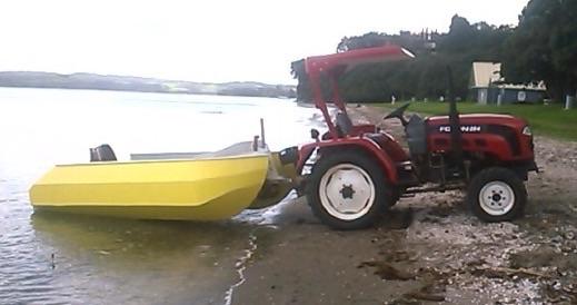 It proved very successful and I only get cavitation when heading straight down on a following sea in waves over 200 mm . I have found I only need to run off about 30 degree and cavitation stops. You can see from the photos I have fitted fold up wheels on the back (sea legs) and a removable set for the bow. If anyone is interested I am happy to share my design. The one thing I would change is have a little more sharpness on the bows. With my new 30 hp mercury light outboard BANANA SPLIT cruses at 20 knots with top speed over 25 knots.