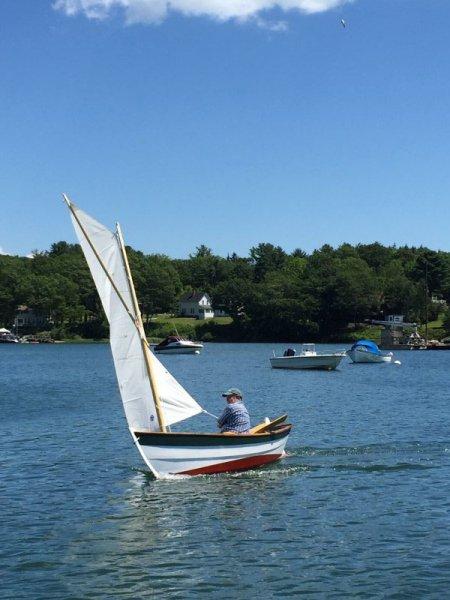 I built this boat in 1985 for my mother, and this past year did extensive rebuilding of bottom, transom, and converted it to a sprit rigged sailing skiff with a daggerboard. It sails well!
