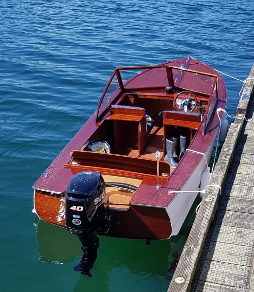 The design brief for Haven was inspired by Lyman and other lapstrake runabouts popular in the late 1950s. She was designed for me by Paul Gartside. The beautifully drawn plans were published in Watercraft magazine in 2016 and in Paul’s book Plans and Dreams Volume II (Chapter 21).Haven is of glued-lapstrake plywood construction using 3/8″ meranti marine plywood, her structure is of Douglas fir, and her decking and interior are sapele. I learned glued-lapstrake construction with John Brooks in courses at the WoodenBoat school in 2007 and 2008. Haven is the third boat I built using this method, preceded by an Arch Davis Penobscot 14 (launched 2011) and a Joel White Shellback dinghy (launched 2014). Haven was a joy to build over four years of part-time work.Haven has a 40hp 4-stroke Suzuki outboard, sufficient for cruising speeds in the 17-20 knot range. She beaches easily when exploring islands in the Gulf Islands National Marine Park in the Salish Sea.