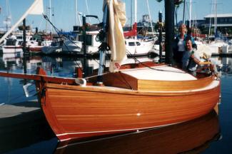 Steve Redmond designed this 20' Elver Canoe Yawl built by Jeff Waddington of Sidney, BC, Canada. Launched Friday, July 13, 2001 Jeff sails her out of Port Sidney. He writes that the hull is strip-planked Douglas fir, with epoxy and nails between strips. He used both Philippine and Honduras mahogany for the trim. Construction took him 5 years, working part-time.