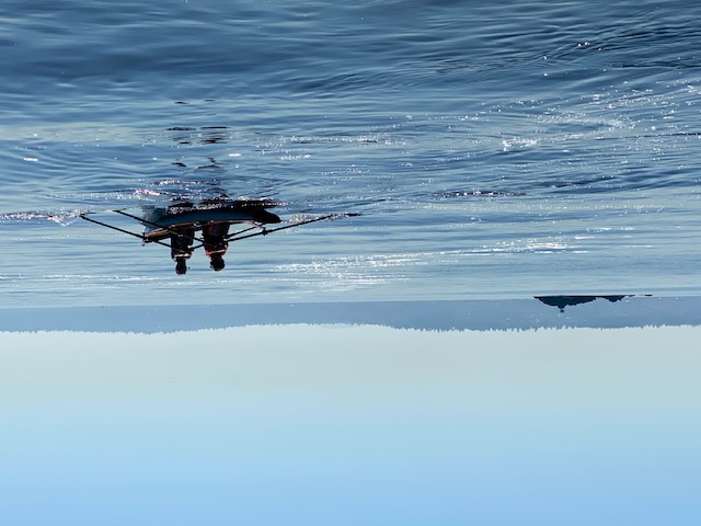 I built this cedar strip version of a CLC Annapolis Wherry over an 18 month period & about 1500 hours. Rather than buying the recommended “drop-in” rowing rigs I constructed my own assemblies in both the single & double configurations. The boat is a sweet & composed row! My wife is relatively new to sliding seat rowing & loves sculling together. The hull & decks are 1/4″ western red cedar with yellow cedar highlighting & covered with epoxy & 4oz fiberglass. The rig assemblies are makore.