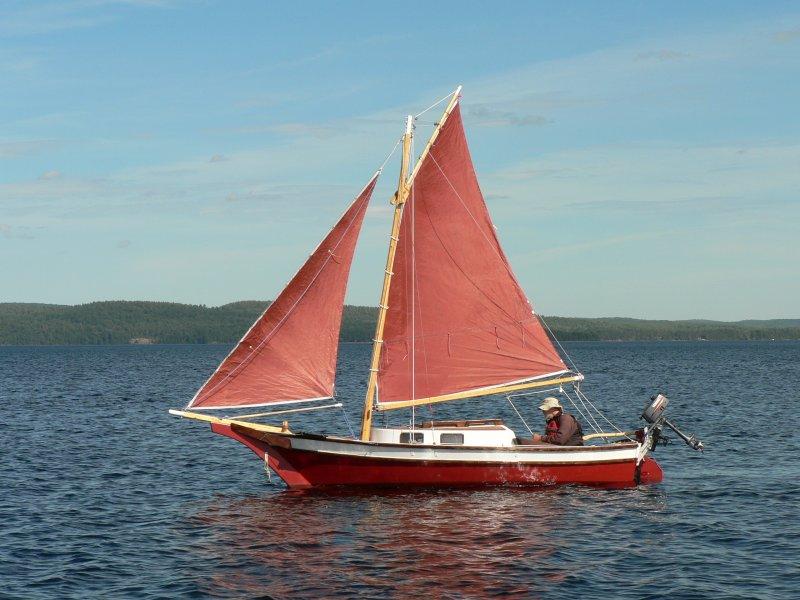 Though it was his first attempt at boatbuilding, Herschel Payne took just 4 months to build this 16′ Stevenson Weekender, SEA RABBIT. He built it from common lumber materials and regular hardware fittings, spending just $1500 for the boat. He writes that he didn’t want to invest to much in his first attempt. Herschel sails SEA RABBIT on Round Lake not far from Peterborough, Ontario, Canada.