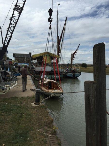 In the Scarborough class, she is the only boat with a counter-hung stern, the others are all double enders. She sat derelict for 10 years with sunlight shining through her seams before Andy rescued her.