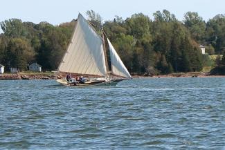 Swan’s Isle came to us from Swan’s Island (near Bar Harbor via Kittery, Me. She was missing her suite of sails along with the gaff spar.The chap we purchased her from had replanted the top of the fish box along with a portion of the aft deck. He guessed her age at around 40 years and indicated she appeared to have been on the hard for perhaps ten years. Otherwise she was in quite good shape.My efforts involved building a new gaff with much appreciated input from Harold Burnham. Harold built me a set of sails out of Oceanis Cream Cotton.Refinishing extended from spars, main deck and trim, addition of chain plates/ standing rigging and pin rails. The hull planking above the waterline needed attention, the plank seam filler had degraded to the consistency of cement so I opted to bee out the seams and ended up using a swipe of British made Bostik 920FS (Like it better then 5200).The primer/ paint/ colours come from George Kirby Jr Paints, New Bedford, MA.The drive we’ve fitted is electric, a kicker that hangs off the stbd. side, 24 volts fed from 260 AH batteries.