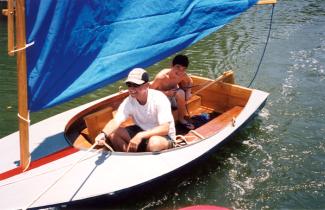 Shell Boats of St. Albans, VT, provided the design for this 12' Swifty built by Arnie Goodman and his son Sam, of Tampa, FL. They launched her on May 31, 2004 on Tampa Bay, FL. She is of lapstrake plywood construction with an unstayed mast and sprit boom. Contact Arnie and Sam at algmfg@aol.com.