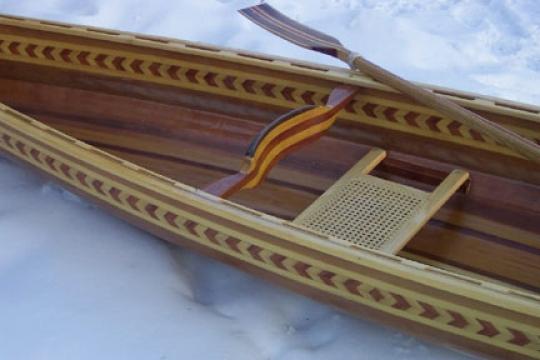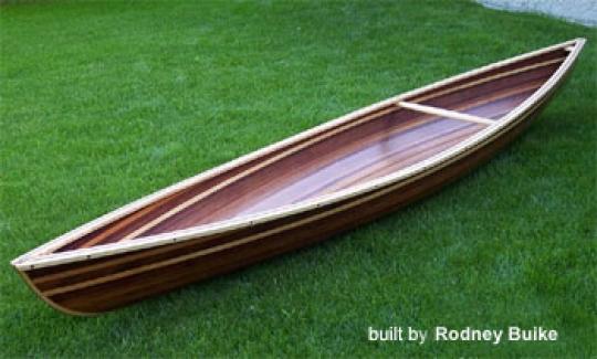 Truly the poor mans yacht, the origin of the Rob Roy goes back to England and the mid 1800’s. John MacGregor, after seeing our native birch bark canoes and the Eskimo kayak, designed his idea of an efficient cruising canoe, calling it the Rob Roy. Typical of this type of solo canoe were: length 12′ to 15′, propelled with a double blade paddle from a sitting position and often rigged for sail. Early American canoe builders like J. Henry Rushton and W.P. Stephens were influenced by this style. Until the early 1900’s, American recreational canoeing was dominated by the double paddle canoe.This hull design has been built in many versions, from a simple light weight fast cruising canoe, to a full decked version of bookmatched walnut veneer, with sliding seat, foot rest, floorboards and hand rubbed varnish. There are many possibilities of how this canoe may be trimmed and fit out.