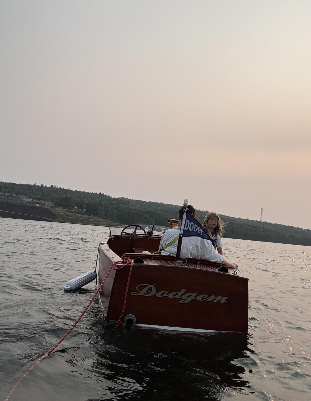 This stunning 16' mahogany inboard runabout is model 202, the “Special Utility Boat.” Built in 1934, it is fitted with a 4-cylinder, 35-hp Lycoming engine. Complete with a shatterproof windshield, automotive steering, nickel silver fittings, and upholstered seat backs and cushions. The wooden hull and framing are almost totally original, and the hull was refastened about 15 years ago. The Lycoming engine (#3090) has been maintained and winterized annually. The exhaust piping was replaced in 2021. Current owner purchased from Maine Maritime Museum and was launched successfully in 2025. Boat took on some water in storm swell this season, and needs engine clean out and likely a new starter.