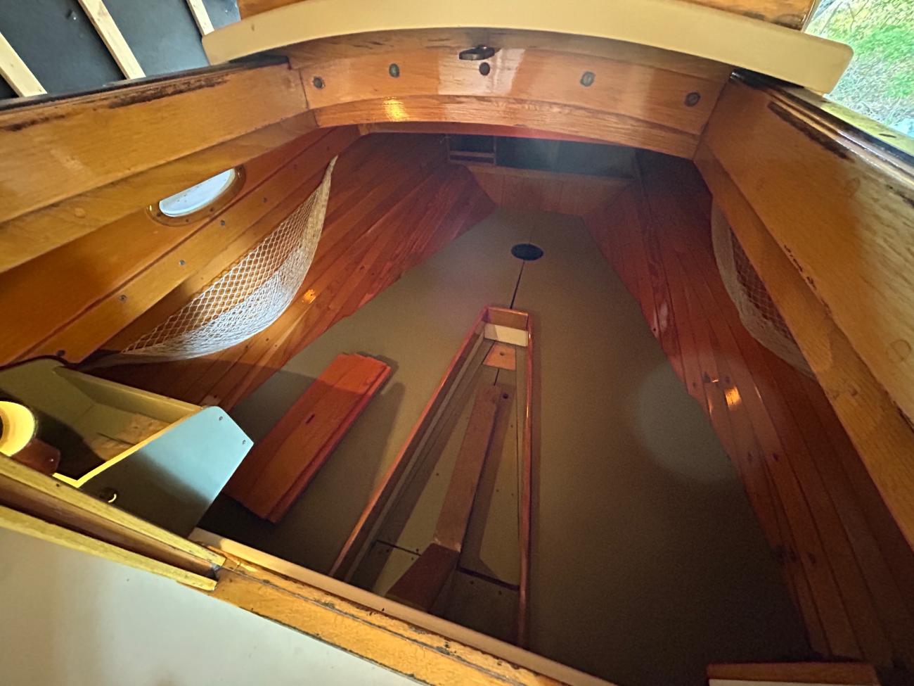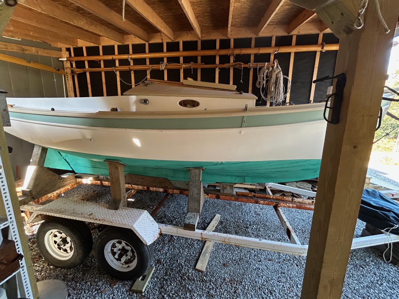 Built by Great Lakes Boatbuilding School / instructor Pat Mahon. Launched 2017. Nat Wilson sails. 6″ tapered oak added to keel and corresponding increased draft of rudder per designers recommendation (and included in new plans) Sailed almost daily in the Summer. Well kept. Sail away condition. “Yard” trailer suitable for slow journeys but serviceable and handy. Kept in a shed.