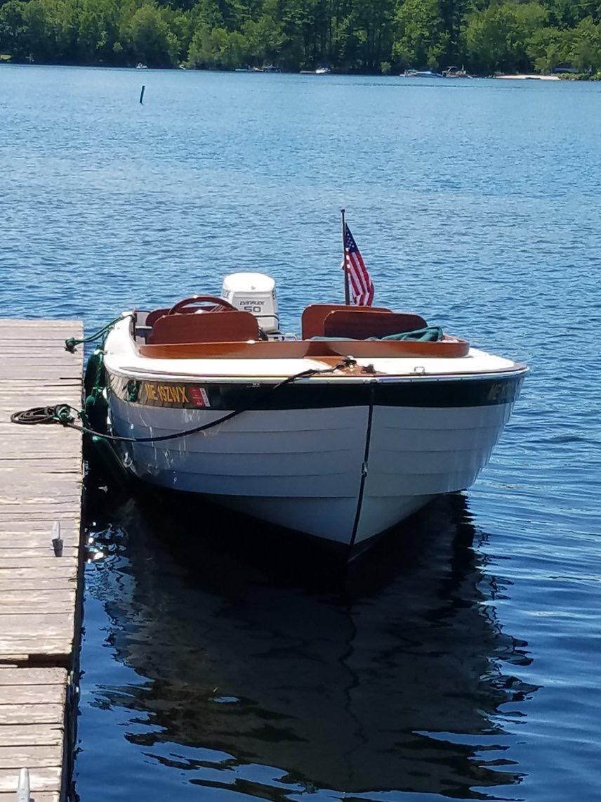 2015 Maine Landing School 17' runabout, unique, only four built, hand crafted wood/fiberglass mat, 50-hp E-Tec, ~225 hrs fresh water only, with trailer.