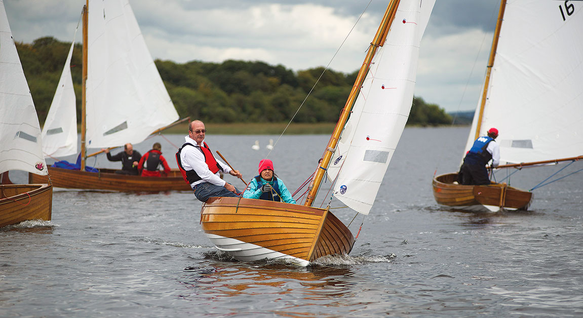 I joined this year’s regatta at Lecarrow on the River Shannon and sailed on the 105-year-old MOOSMIE, which under the ownership of David MacFarlane has twice won the top Wag trophy, the Jubilee Cup, and finished third overall in 2015. While I had no sense of sailing especially fast (slightly the opposite, if I’m honest), it was an undeniably exhilarating experience racing in a fleet of (almost) identical boats. With three sails to play with, there’s enough to keep you busy at all times, and the sailing is competitive enough to always be challenging (last year’s top cup winners won by just one point in the very last race of the season; that’s how close the racing is). It’s everything, in other words, you could want from dinghy racing, combined with the sensual pleasure of sailing on a vintage wooden boat.