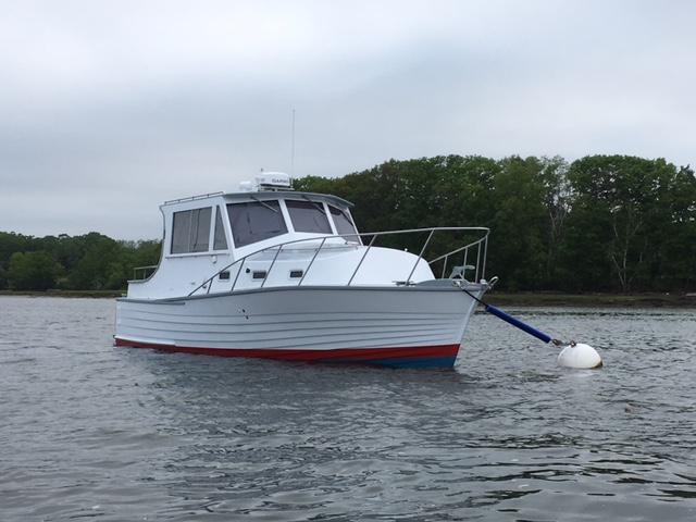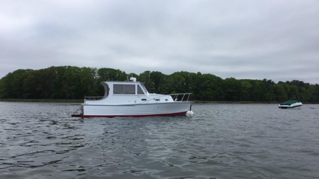 Navoo 30′ express cruiser - rebuild completed in May 2018 by Paul Rollins in York, Maine. She was originally built for my uncle and aunt in Fair Haven, NJ by Ivan Pedersen at the Hans Pedersen & Sons yard in Keyport, NJ in spring of 1971 as a twin gas engine sport fisherman. Paul redesigned and built Navoo spec'd for twin diesel. Repower was done by Bosch Marine in Plymouth, MA in 2022. Pedersen boats were among the breed derived from commercial use - Jersey Sea Skiffs and earlier, surf-launched, row/sail fishing boats and early, National Life Saving Service Pound Boats. She’s more of a Rollins boat now, a family-use coastal cruiser. Entering Navoo in the registry looking for tips on full exterior painting & varnishing outdoors, + other maintenance help.